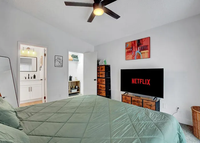 Cette villa New! The Casita Sol, Fireplace, Backyard, Quiet dispose d'une kitchenette comprenant une cafétière/théière électrique et un réfrigérateur pour préparer les repas. Proposant des plats américains, Fatburger est situé à une courte distance du gîte. Villa se trouve à 18 km de la gare Monorail - Flamingo/ Caesar's Palace, ce qui rend les attractions touristiques de Las Vegas facilement accessibles.
